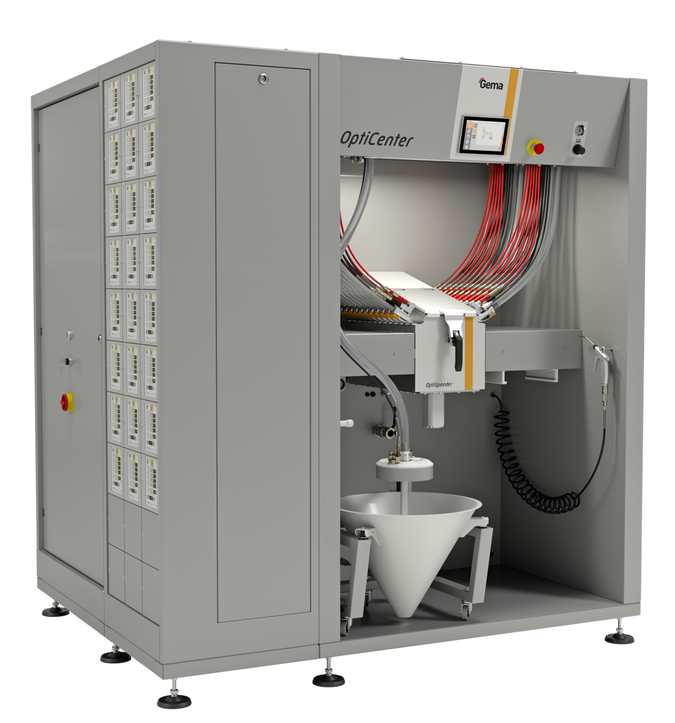 Maksymalne korzyści na minimalnej przestrzeni. Wydajne i oszczędzające miejsce zarządzanie proszkiem, wyposażone w technologię pompy aplikacyjnej OptiSpray All-in-One.
