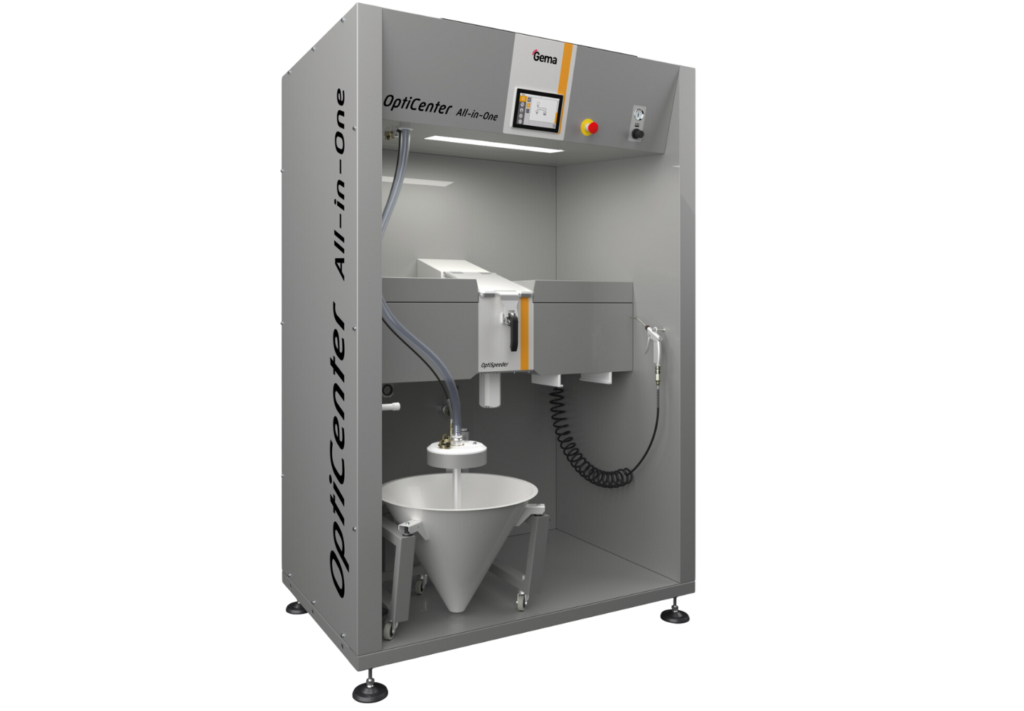 Maksymalne korzyści na minimalnej przestrzeni. Wydajne i oszczędzające miejsce zarządzanie proszkiem, wyposażone w technologię pompy aplikacyjnej OptiSpray All-in-One.